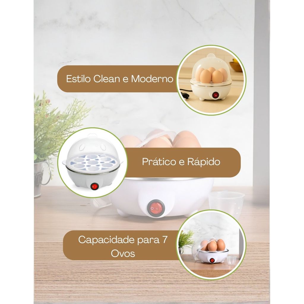 | Cozedor de Ovos Elétrico Automático 7 Ovos 350W Branco este produto | R$ 40,90 | 11% | 4.9/5 | 4 |