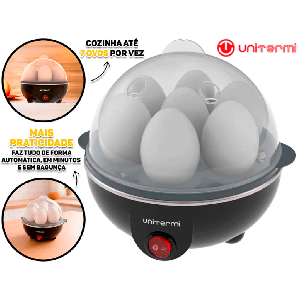 Com capacidade para cozinhar até 7 ovos por vez, você prepara ovos perfeitos em minutos, com a praticidade de selecionar o ponto ideal de cozimento, sem bagunça e com total controle. Outras Características: Indicador com luz de prontidão. Tampa transparente para monitoramento Modelo: CO-UNI-P-B-127 | Potência: 350W | Tensão: 127V | Frequência: 50~60 Hz | Corrente: 3.0 A Modelo: CO-UNI-P-B-220 | Potência: 350W | Tensão: 220V | Frequência: 50~60 Hz | Corrente: 1.5 A Peso: 0,411 Kg Dimensões: 160 X 160 X 165 mm Material: Aço Inoxidável e plástico injetado (PP) Cód: 6.3.470 110v Cód: 6.3.471 220v NCM: 85167990 EAN 127V: 7898663745290 EAN 220V: 7898663745306