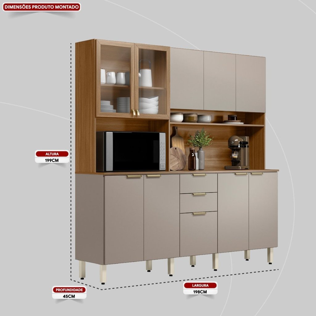 Cozinha Compacta 10 Portas 2 Gavetas Amora Amêndola Touch/Nude Prime