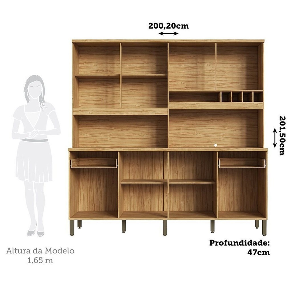 Cozinha Compacta 100% Mdf 8 Portas 2 Gavetas e Mini Adega 200cm Hungria Espresso Móveis Amêndoa/Off White