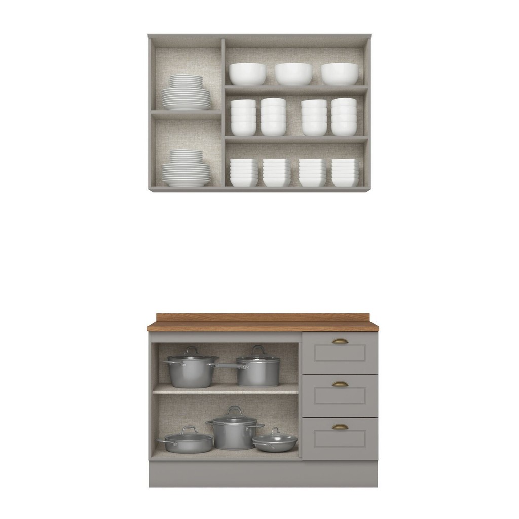 Cozinha Compacta 2 Peças 100% Mdf com Tampo Americana Cinza/Nature