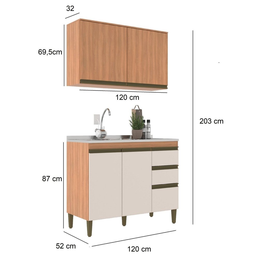 Cozinha Compacta 2 Peças 3 Gavetas Cecília