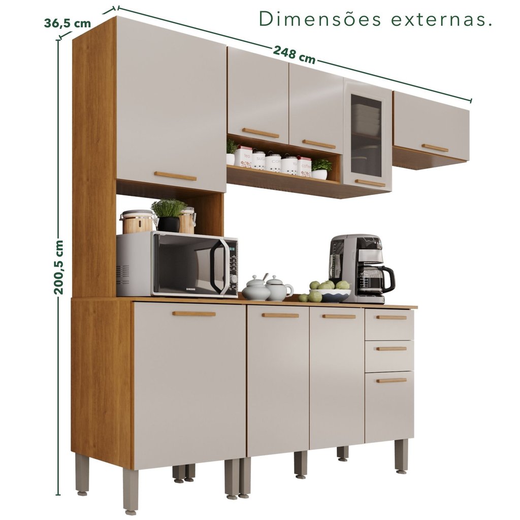 Cozinha Compacta 4 Peças 9 Portas 2 Gavetas Bella Cinamomo/Off White