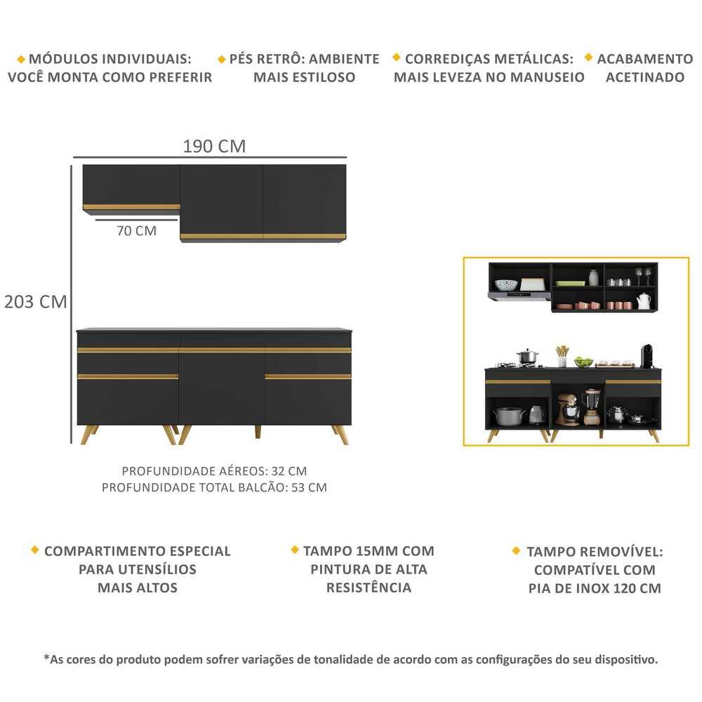 Cozinha Compacta 4 peças c/ Armário e Balcão MP3705 Veneza GB Preta