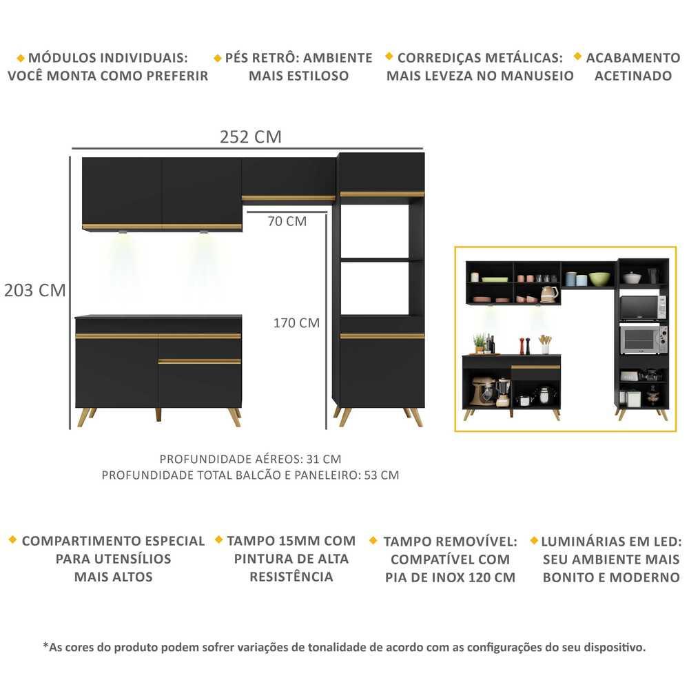 Cozinha Compacta 4 peças com Leds MP2018 Veneza Up Multimóveis Preta