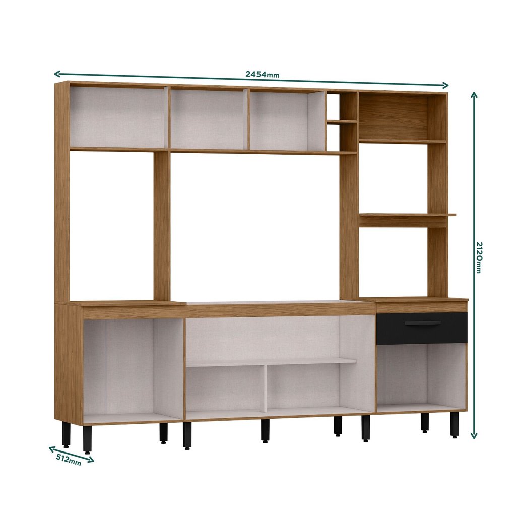 A cozinha Zoe é uma excelente opção de custo-benefício para você que procura espaço, praticidade e um design moderno com a cor super inovadora para deixar o seu ambiente mais sofisticado! Produzida em MDP, ela é ideal para organizar seus utensílios domésticos. As dobradiças e corrediças são metálicas e seus puxadores em ABS. Acompanha manual de montagem. Estilo: Moderno Modular: Sim Peso (kg): 87.13 Garantia: 03 Meses Altura (cm): 212 Acabamento: Pintura UV Largura (cm): 245.4 Possui Pés: Sim Tipo de Porta: Misto (Bater e Basculante) Altura dos Pés: 17 Pés Reguláveis: Sim Possui Gavetas: Sim Possui Rodízio: Não Suporta Até (kg): 70 Acompanha Tampo: Não Profundidade (cm): 51.2 Escala de Brilho: Semi-Brilho Gaveta com Chave: Não Material dos Pés: ABS Material da Porta: MDP Material do Fundo: MDF Origem do Produto: Nacional Acabamento dos Pés: Pintura Ambiente Principal: Cozinha Balcão Suporta Pia: Sim Material da Gaveta: MDF/MDP Material Principal: MDP Acabamento da Porta: Pintura Quantidade de Peças: 6 Sapatas Niveladoras: Sim Acabamento da Gaveta: Pintura Balcão Acompanha Pia: Não Material da Corrediça: Metálica Material da Prateleira: MDP Peso Máximo por Gaveta: 5 Acabamento da Prateleira: Pintura Tipo de Puxador da Porta: Externo Escala de Brilho da Porta: Semi-Brilho Tipo de Puxador da Gaveta: Externo Escala de Brilho da Gaveta: Semi-Brilho Peso Máximo por Prateleira: 5 Tipo de Armário de Cozinha: Cozinha Compacta Possui Recorte para Cooktop: Não Tipo de Corrediça da Gaveta: Metálica Telescópica Material do Puxador da Porta: ABS Material do Puxador da Gaveta: ABS Escala de Brilho da Prateleira: Semi-Brilho Medida de Cada Item (A x L x P) (novo): 212x245,4x51,2 Material da Dobradiça/Corrediça da Porta: Aço Marca: Espresso Móveis Cor Flex: Não Cor Interna: Ártico Cor: Freijó/Nero Cor do Produto: Freijó/Nero Itens Inclusos: 1 Cozinha, kit ferragens e manual de montagem Cor Predominante: Marrom Linha ou Coleção: Zoe Tamanho Indicado da Pia (L x C): 120 Tamanho Indicado do Tampo (L x P): 120