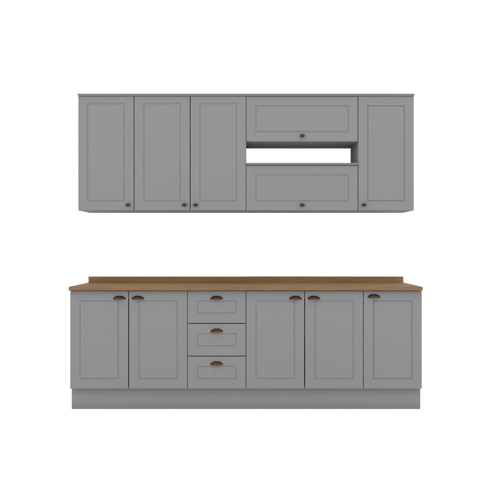 Cozinha Compacta 7 Peças 11 Portas 3 Gavetas Emily Cinza/Nature