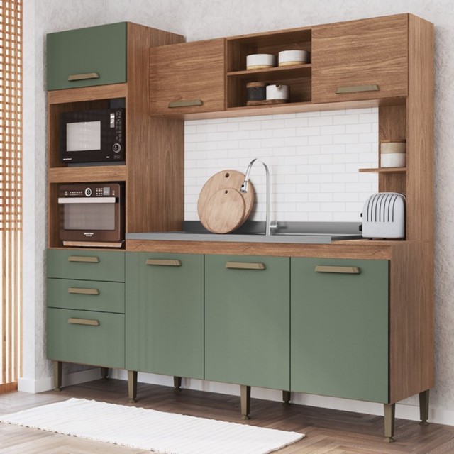 Cozinha Compacta 7 Portas 2 Gavetas 2 Nichos para Forno Melyna CZ6672 Móveis Freijó/Oliva