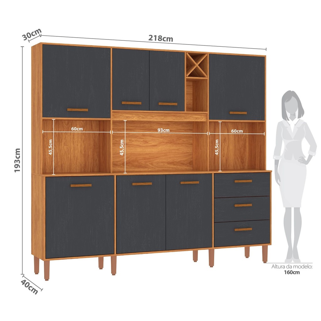 Prepare-se para realizar seu sonho de ter uma Cozinha maravilhosa e encantadora! Orgulhosamente apresentamos a Cozinha Modena CM730, lançamento que vai te inspirar a completar seu lar com beleza e praticidade. A Cozinha Modena possui 7 portas e 3 gavetas, nichos para microondas e forno elétrico, além de nicho garrafeiro e nichos decorativos e para uso como suporte para os mais diversos utensílios e aparelhos. Conta com prateleiras internas e um excelente aproveitamento de espaço. Possui 8 pés com regulagem de altura, dobradiças metálicas e corrediças telescópicas. Um grande diferencial é seu acabamento em Pintura UV de última geração, produzido com tecnologias avançadas, o que garante acabamento impecável e alta durabilidade. Invista nesta cozinha moderna de design único e encante-se! Estilo: Moderno Modular: Não Peso (kg): 91.1 Garantia: 03 Meses Altura (cm): 193 Acabamento: Pintura UV Largura (cm): 218 Possui Pés: Sim Possui Vidro: Não Possui Portas: Sim Tipo de Porta: Bater Altura dos Pés: 17 Pés Reguláveis: Sim Possui Gavetas: Sim Possui Rodízio: Não Acompanha Tampo: Sim Profundidade (cm): 40 Escala de Brilho: Semi-Brilho Gaveta com Chave: Não Material dos Pés: Plástico Material da Porta: MDP Material do Fundo: MDP Material do Tampo: MDP Origem do Produto: Nacional Ambiente Principal: Cozinha Balcão Suporta Pia: Não Espessura do Tampo (mm): 12 Material da Gaveta: MDP Material Principal: MDP Possui Prateleiras: Sim Acabamento da Porta: Pintura Texturizada UV Quantidade de Peças: 1 Sapatas Niveladoras: Não Acabamento da Gaveta: Pintura Texturizada UV Balcão Acompanha Pia: Não Material da Corrediça: Metálica Material da Prateleira: MDP Peso Máximo por Gaveta: 5 Acabamento da Prateleira: Pintura UV Tipo de Puxador da Porta: Externo Escala de Brilho da Porta: Semi-Brilho Espessura da Estrutura (mm): 12 Tipo de Puxador da Gaveta: Externo Escala de Brilho da Gaveta: Semi-Brilho Peso Máximo por Prateleira: 8 Tipo de Armário de Cozinha: Cozinha Compacta Acompanha Rodapé Decorativo: Não Possui Recorte para Cooktop: Não Tipo de Corrediça da Gaveta: Metálica Telescópica Material do Puxador da Porta: MDF Material do Puxador da Gaveta: MDF Escala de Brilho da Prateleira: Semi-Brilho Tipo de Dobradiça/Corrediça da Porta: Simples Material da Dobradiça/Corrediça da Porta: Metálica Marca: Fellicci Cor Interna: Cinamomo Cor do Produto: Cinamomo/Grafite Itens Inclusos: 1 Cozinha Compacta, Manual de Montagem e Kit Ferragem Cor Predominante: Preto Linha ou Coleção: Modena Quantidade de Prateleiras: 04 Prateleiras Quantidade de Portas: 7 Portas Tamanho Indicado da Pia (L x C): não se aplica Quantidade de Gavetas: 03 Gavetas Tamanho Indicado do Tampo ou Pia: não se aplica
