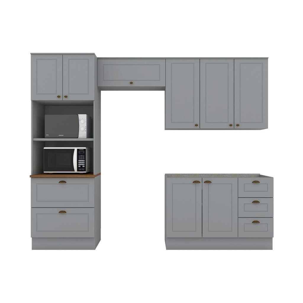 Cozinha Compacta 8 Portas 5 Gavetas Peças Emily Cinza/Nature