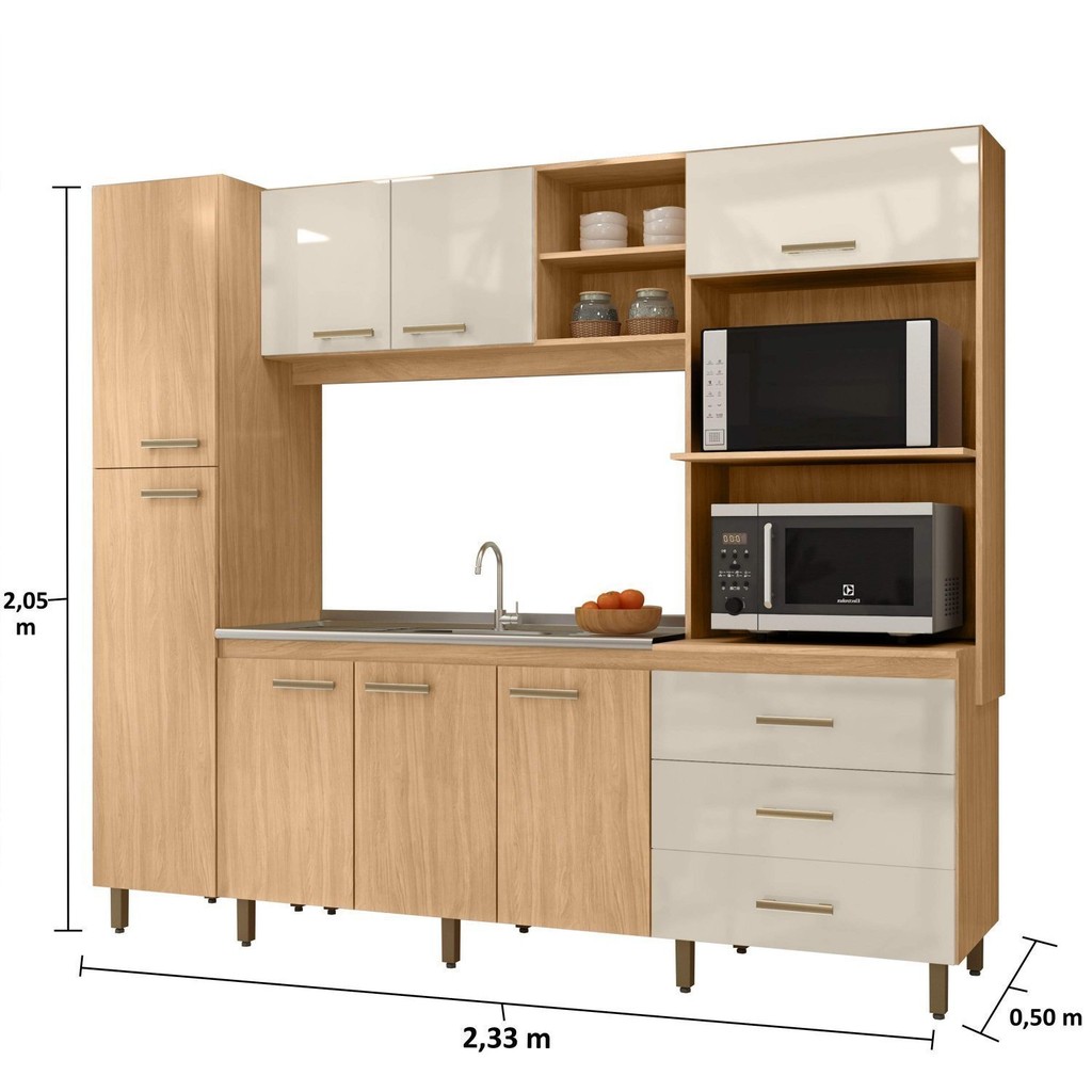 Cozinha Compacta 8 Portas e 3 Gavetas Vitória Amêndoa/Avelã