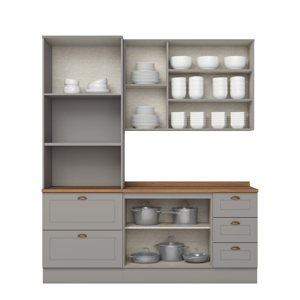 Cozinha Compacta Americana 3 Peças com Torre Quente Nature/ Cinza