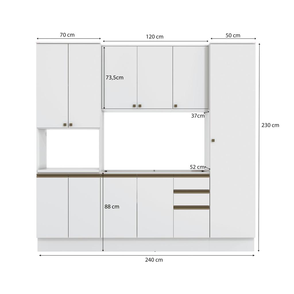 Cozinha Compacta com Kit Forno Celeste Kappesberg 100% MDF Branco 240cm