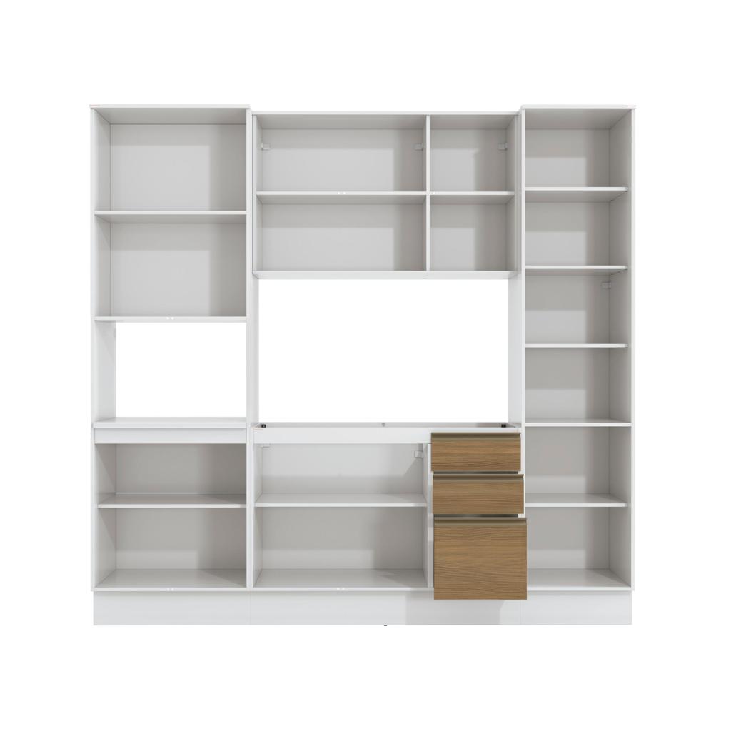 Cozinha Compacta com Kit Forno Celeste Kappesberg 100% MDF Branco/Nogueira 240cm