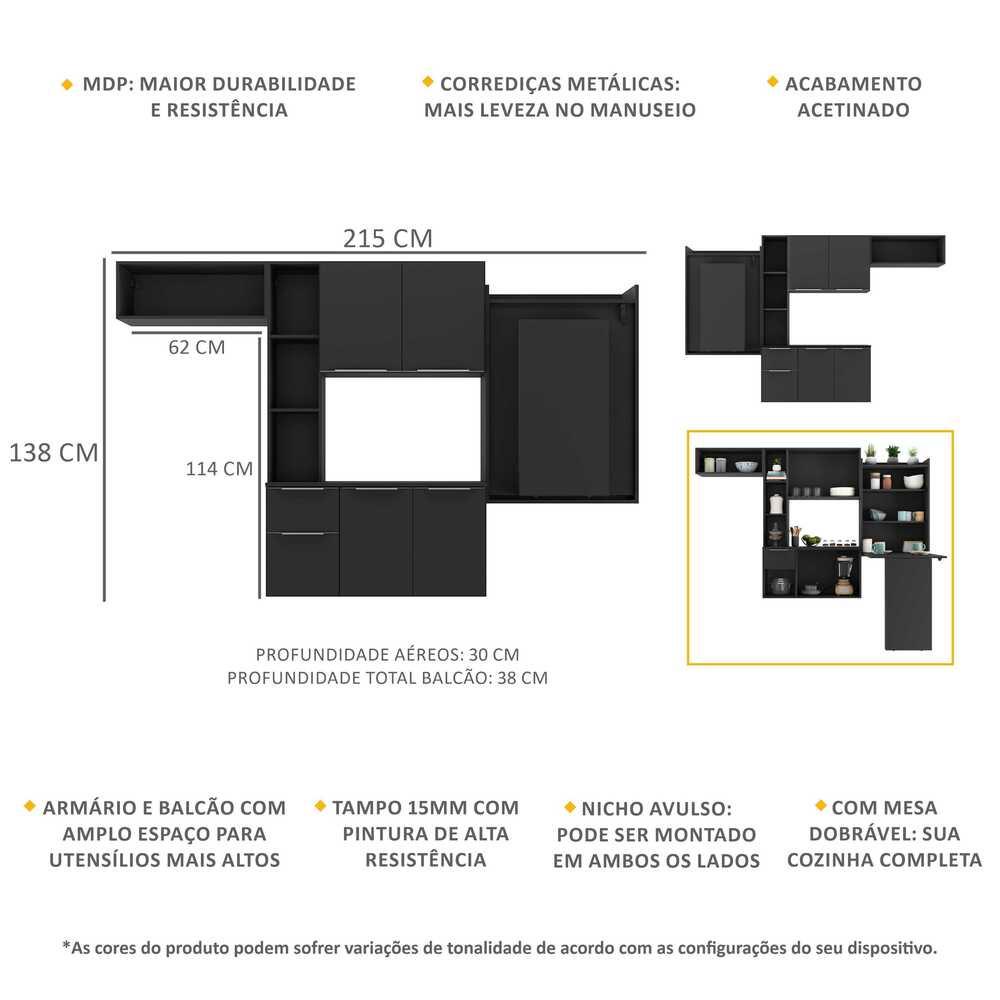 Cozinha Compacta com Mesa Dobrável MP2010 Sofia Multimóveis Preta