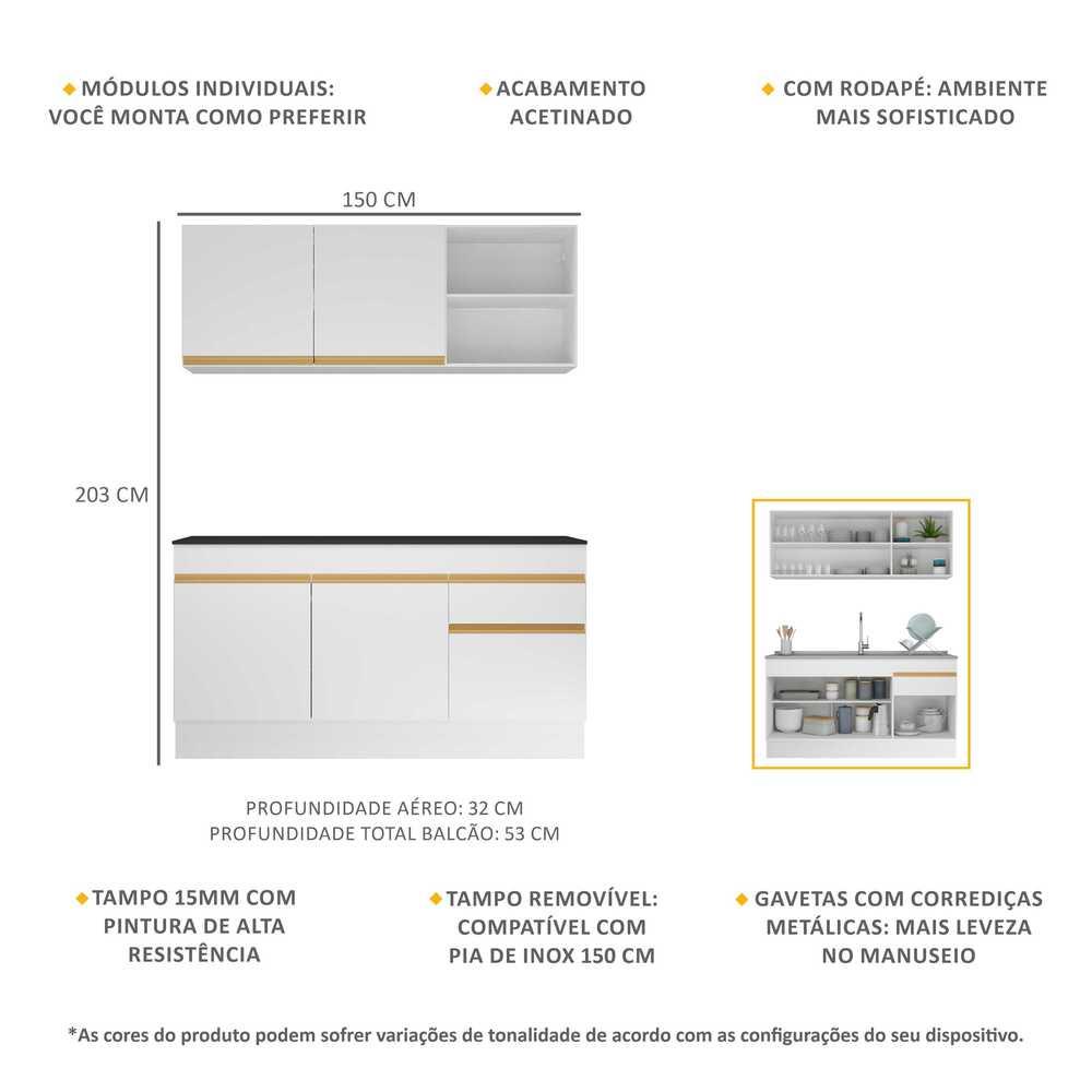 Cozinha Compacta com Rodapé Veneza Multimóveis MP2114 com Armário e Balcão Branca