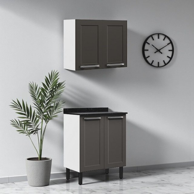 Cozinha Compacta em Aço 2 Peças 4 Portas Florença Itatiaia Grafite/Branco