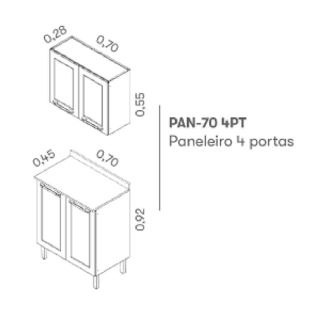 A linha Frorença tem o design das portas diferenciado, com linhas curvas modernas. O puxador grande em ABS com acabamento metalizado ônix interage com o estampo da porta, proporcionando robustez ao produto,é produzido com material de qualidade, visando durabilidade e resistência. Possui 4 portas e pés com regulagem de altura, é imponente e sofisticada. Modernidade e beleza. Você organiza os utensílios domésticos, sem abrir mão de qualidade e bom gosto! *** Detalhe importante em relação a altura total, pelo fato de serem montados de forma individal a altura é flexivel conforme a necessidade do consumidor, outro ponto importante é a profundidade, na parte superior ele tem 28cm e na parte inferior 45cm. Estilo: Americana Modular: Sim Peso (kg): 23 Garantia: 12 Meses Altura (cm): 147 Acabamento: Pintura Largura (cm): 70 Possui Pés: Sim Possui Portas: Sim Tipo de Porta: Bater Altura dos Pés: 16 Pés Reguláveis: Sim Possui Gavetas: Não Possui Rodízio: Não Suporta Até (kg): 70 Acompanha Tampo: Sim Profundidade (cm): 45 Escala de Brilho: Semi-Brilho Material dos Pés: Polipropileno Material da Porta: Aço Material do Fundo: Aço Material do Tampo: MDP Origem do Produto: Nacional Ambiente Principal: Cozinha Balcão Suporta Pia: Não Material Principal: Aço Possui Prateleiras: Sim Acabamento da Porta: Pintura Quantidade de Peças: 4 Sapatas Niveladoras: Sim Balcão Acompanha Pia: Não Material da Prateleira: Aço Acabamento da Prateleira: Pintura Tipo de Puxador da Porta: Externo Escala de Brilho da Porta: Semi-Brilho Peso Máximo por Prateleira: 10 Tipo de Armário de Cozinha: Cozinha Compacta Possui Recorte para Cooktop: Não Material do Puxador da Porta: ABS Material do Puxador da Gaveta: ABS Escala de Brilho da Prateleira: Semi-Brilho Tipo de Dobradiça/Corrediça da Porta: Simples Material da Dobradiça/Corrediça da Porta: Metálica Marca: Itatiaia Tonalidade: Cinza / Branco Cor Interna: branco Cor: Grafite/Branco Cor do Produto: Grafite/Branco Itens Inclusos: 1 Balcão, 1 Armário Aéreo, e Manual de montagem Cor Predominante: Cinza Linha ou Coleção: Florença - Itatiaia Quantidade de Prateleiras: 05 Prateleiras Quantidade de Portas: 4 Portas