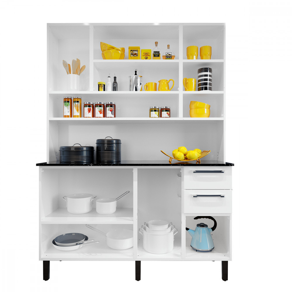 A Cozinha Compacta da linha Florença chegou para tornar o seu ambiente ainda mais completo e otimizado. A cozinha é perfeita para quem tem pouco espaço em casa e deseja móveis funcionais, com gavetas que facilitam o acesso aos utensílios. Seu designer traz elegância, modernidade e sofisticação, devido possuir uma cristaleira com porta de vidro temperado e acabamento fosco, garantindo versatilidade na organização dos utensílios. Suas gavetas contam com corrediças telescópicas, que abrem suavemente e têm trava de segurança para não deixar a gaveta cair. Suas vantagens não param por aí, modelo completo e que possui: -Puxadores em ABS com acabamento preto fosco. Além de bonitos, são resistentes e fáceis de manusear. -Kit com prateleiras bem distribuídas para deixar tudo organizado, prático e funcional. -Pés injetados com sapata regulável em até 25 mm para melhor nivelamento do piso. -Tampo em BP resistente a altas temperaturas (até 120°), mais funcionalidade e conforto no preparo das suas receitas. Características técnicas: Material principal: Aço Acabamento: Pintura eletrostática a pó Material do tampo: Tampo de 15mm revestido mdp bp padrão nero marquin Material dos puxadores: ABS Material dos pés: Plástico PP regulável Quantidade de portas: 8 Quantidade de gavetas: 2 Quantidade de prateleiras/base: 5 Quantidade de pés: 6 Altura mínima dos pés: 16cm Altura máxima dos pés: 18cm Corrediças: Telescópica Dobradiças: 16mm Puxadores: 10 Escala de brilho: Semibrilho Dimensões do produto: Altura: 195cm Largura: 140cm Profundidade: 45cm Peso: 47,80kg Garantia de 12 meses com a fabricante