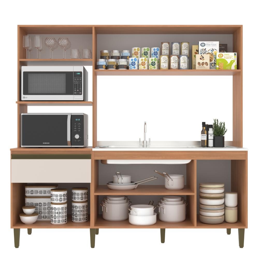 Cozinha Compacta J Carvalho Vitoria New 6 Portas 1 Gaveta Freijó/Off White