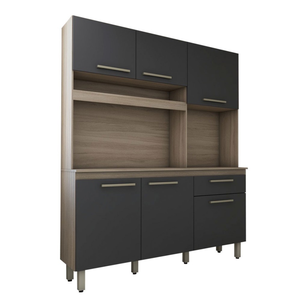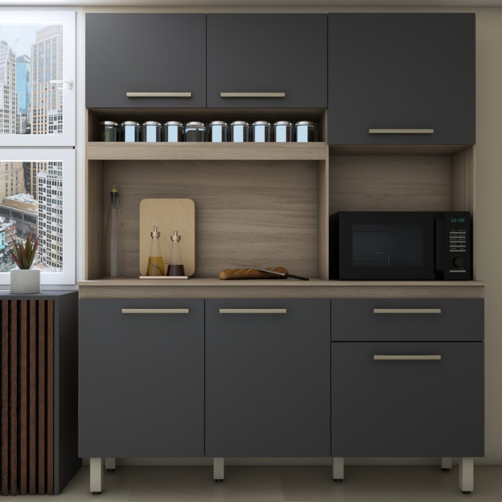 Cozinha Compacta Larissa 6 Portas 1 Gaveta Freijó/Grafite - Panorama Móveis