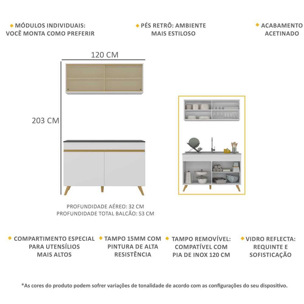 Cozinha Compacta Multimóveis MP2140 – Armário Aéreo e Balcão 120cm com Pés Retrô e Tampo Removível