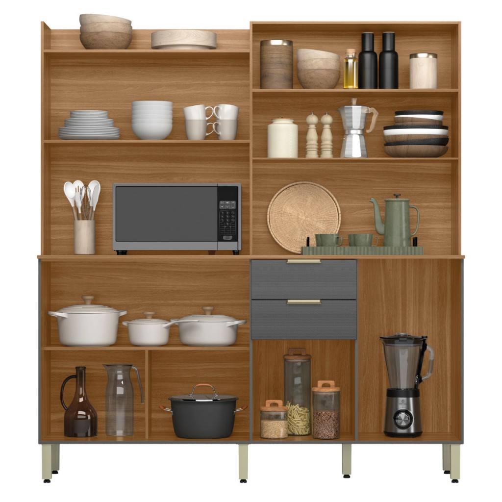 Dimensões: - Altura: 194,50 cm - Largura: 178,00 cm - Profundidade: 38,50 cm - Peso: 66,100 kg Descrição: O(a) Cozinha Compacta Pomelo 7 Portas 2 Gavetas Amêndola/Grafito Prime Tx - Pnr Móveis é produzido em MDP na escala de brilho Fosca com Textura e Fosco, e possui um grau de dificuldade de montagem: Difícil. Seu revestimento/acabamento é: Pintura UV. Infelizmente a Loja não oferece serviço de montagem, deixamos essa informação bem clara em todas as nossas páginas de produto. Onde especificamos que os móveis chegarão desmontados, e que a montagem fica por conta do cliente. Como não oferecemos esse serviço não embutimos o mesmo no preço dos produtos, ou seja, maior economia para você! Todos os nossos móveis também acompanham o manual de montagem, e caso você queira, pode realizar a montagem você mesmo, sempre especificamos os graus de montagem dos produtos. Nos casos de grau baixo e médio, com pouco ou nenhum conhecimento, você mesmo pode efetuar a montagem, e fazer essa economia. Apenas nos graus de montagem alto, recomendamos a contratação de um montador com experiência, visto que são montagens mais complicadas. A montagem é feita com Parafusos, cavilhas e pregos.. Este móvel é indicado para que seja utilizado no(a) Cozinha, dando um toque especial no cômodo de sua casa. Para que você mantenha seu produto sempre em ótimo estado, recomendamos que use apenas um pano seco ou levemente umedecido, sem o uso de quaisquer produtos abrasivos. A Loja garante aos clientes, 90 dias de garantia nos produtos, porém, recomendamos que entre em contato com o fornecedor/marca do produto, pois o mesmo(a), pode garantir um prazo maior de garantia. Lembrando ainda que: quaisquer objetos decorativos que aparecem nas imagens, não acompanham o produto. Características: - Espessura da Estrutura: 12mm e 15mm - Possui Gavetas?: Sim - Quantidade de Gavetas: 2 - Peso Suportado nas Gavetas (Kg): 3 Kg - Material das Corrediças: Metálica - Tipo da Corrediça: Convencional - Possui Portas?: Sim - Quantidade de Portas: 7 - Material da Porta: MDP - Espessura da Porta: 15 mm - Tipo de Porta: Portas de Bater e Portas Basculantes - Material das Dobradiças: Metálica e Pistão a Gás - Possui Vidro?: Não - Possui Espelho?: Não - Possui Prateleiras?: Sim - Quantidade de Prateleiras: 3 - Peso Suportado nas Prateleiras:: 5 Kg - Possui Puxadores?: Sim - Material do Puxador: Plástico - Possui Ripamento?: Não - Linha ou Coleção: Pomelo - Montagem Invertida?: Não Pode ser Montado Invertido - É frágil?: Não - Possui Nicho?: Não - Acompanha Tampo para Cooktop: Não - Material da Estrutura: MDP - Escala de Brilho: Fosca com Textura e Fosco - Material do Tampo: MDP - Acompanha Tampo para Pia?: Não - Espessura do Tampo (mm): 15 - Possui Espaço para Pia?: Não - Possui Rodízios?: Não - Acompanha Pia: Não - Possui Pés?: Sim - Pés com regulagem de altura?: Sim - Quantidade de Pés/Sapatas: 7 - Espaço Para Forno: Não - Espaço Para Micro-ondas: Sim - Medidas Espaço Microondas (A x L x P): 47,5 x 87,2 x 38,5 Cm - Possui Vidro: Não - Material dos Pés: Plástico - Cozinha Suspensa: Não - Tipo de Móveis de Cozinha: Armário - Acompanha: Cozinha Compacta, Kit Ferragens e Manual de Montagem - Acompanha Manual de Montagem: Sim - Como os Móveis Chegarão na Minha Casa: Desmontado em caixas, acompanhado de todas as peças, ferragens e manuais para montagem. - Grau de Dificuldade da Montagem: Difícil - Necessita de Montagem: Sim - Sistema de Montagem: Parafusos, cavilhas e pregos. - Garantia (dias): 90 - Indicação de Uso: Cozinha - Observação: Objetos decorativos que aparecem nas imagens, não acompanham o produto. - Recomendação de Manutenção: Utilizar pano levemente umedecido, seguido de pano seco. Não utilizar quaisquer produtos abrasivos. - Revestimento /Acabamento: Pintura UV