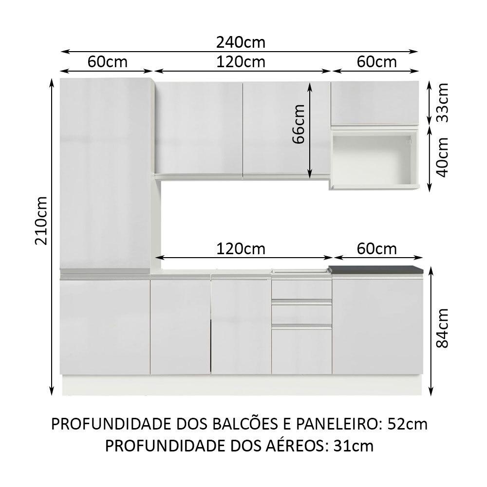Cozinha Completa 100% MDF Madesa Acordes 240001 com Armário e Balcão - Frentes Branco Brilho