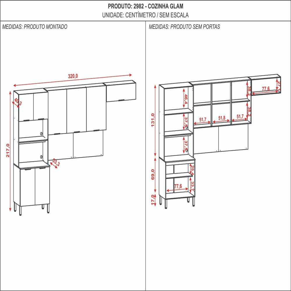 Cozinha Completa 5 Peças 10 Portas 3 Gavetas com Tampo e Painel Ripado Central Glam Sim