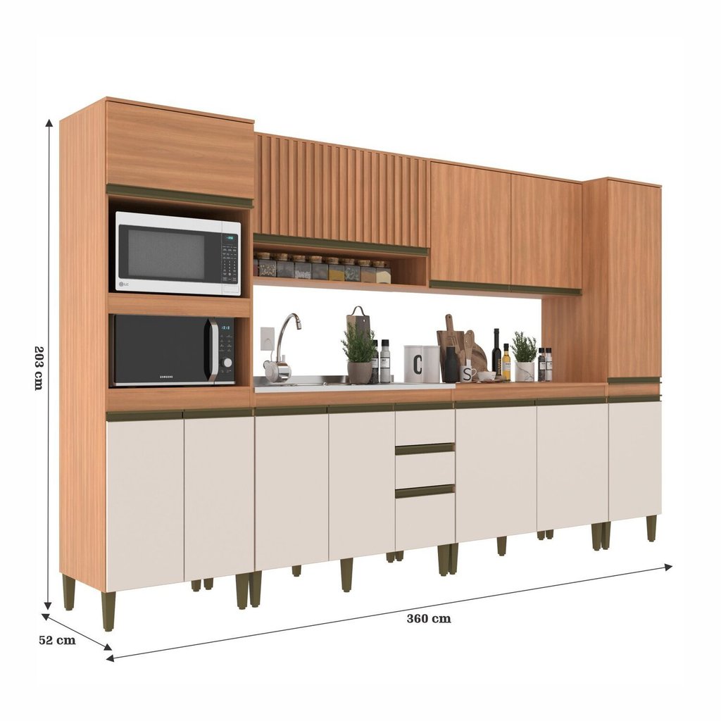 Cozinha Completa 6 Peças 12 Portas com Torre Quente Paneleiro e Aéreo Ripado Cecília Ripada