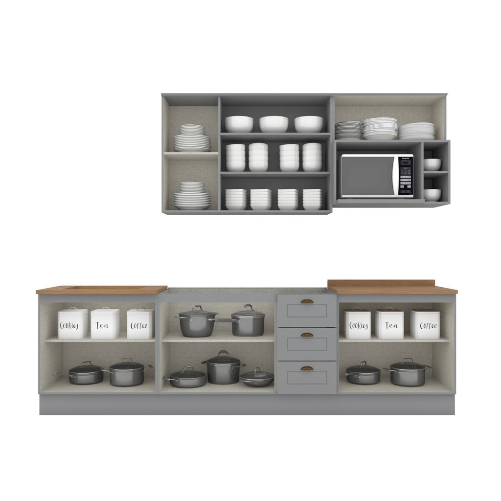 Cozinha Completa 6 Peças com Aéreo Microondas Emily Cinza/Nature