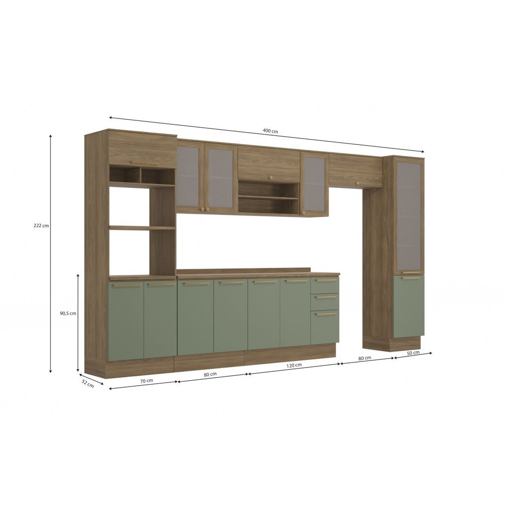 Cozinha Completa 7 Peças com Torre Quente e Porta Telada Botanic Nogueira/Verde Oliva