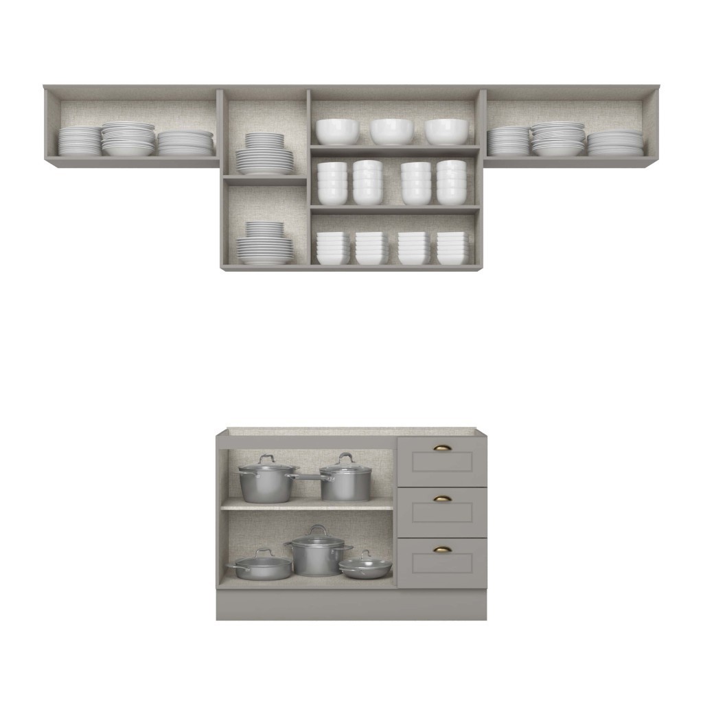 Cozinha Completa Americana 7 Portas 3 Gavetas 100% Mdf Cinza - Henn