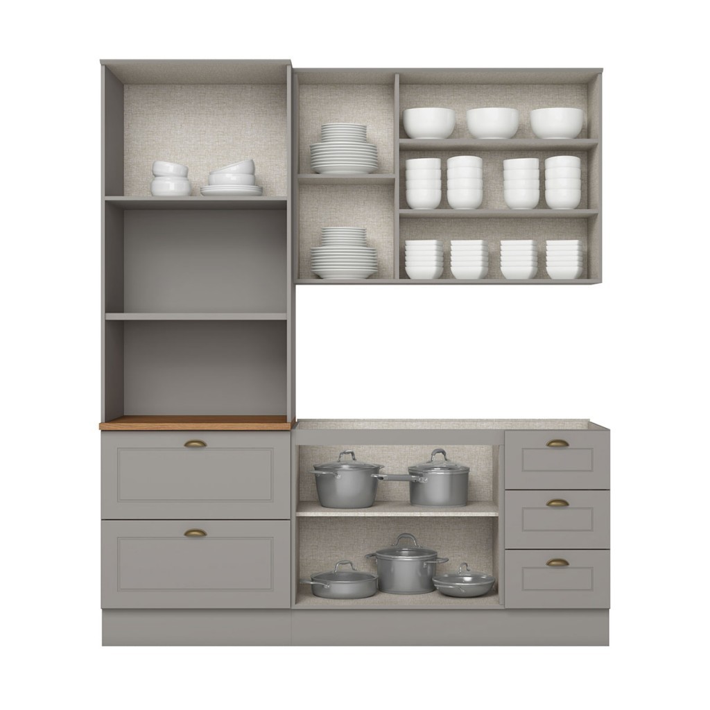 Cozinha Completa Americana 7 Portas 5 Gavetas 100% Mdf Cinza/Nature - Henn