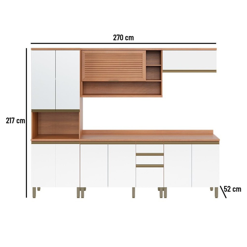A Cozinha Completa Macadâmia é garantia de qualidade, durabilidade e muito encanto para a sua casa. Esta composição é formada por cinco módulos que remetem à estética visual e qualidade dos móveis planejados, e proporcionam um amplo espaço para organização e armazenagens de diversos itens. A escolha das ferragens é outro destaque aqui: todas as portas são equipadas com dobradiças com caneco de 35mm e sistema de amortecimento slow motion – para garantir movimentos mais suaves na abertura e fechamento; já as portas basculantes possuem pistão a gás - componente que garante sustentação e segurança na usabilidade. As gavetas contam com corrediças telescópicas – sinônimo de firmeza, deslizamento mais suave e abertura de extração total – e divisor de talheres. O Paneleiro possui espaço para forno ou micro – aquele eletro muito usado no dia a dia, que precisa estar ao alcance de sua mão. O Armário Aéreo de 1,20m possui porta basculante ripada, no famoso estilo veneziano, e nichos para acomodar os itens especiais. E essa versão se torna completa com os amplos Balcões - itens indispensáveis para armazenagem e preparo no dia a dia. Cozinha com jeito de planejado, mas que já está pronta para sua casa! Modular: Sim Peso (kg): 165.3 Garantia: 03 Meses Altura (cm): 217 Acabamento: Finish Foil Largura (cm): 217 Possui Pés: Sim Possui Portas: Sim Tipo de Porta: Misto (Bater e Basculante) Altura dos Pés: 17 Pés Reguláveis: Sim Possui Gavetas: Sim Possui Rodízio: Não Suporta Até (kg): 32.9 Acompanha Tampo: Sim Profundidade (cm): 52 Escala de Brilho: Semi-Brilho Gaveta com Chave: Não Material dos Pés: Polipropileno Material da Porta: MDP Material do Tampo: MDP Origem do Produto: Nacional Rodízio com Trava: Não Acabamento dos Pés: Polipropileno Ambiente Principal: Cozinha Balcão Suporta Pia: Não Material da Gaveta: MDP Material Principal: MDP Possui Prateleiras: Sim Acabamento da Porta: Finish Foil Quantidade de Peças: 5 Sapatas Niveladoras: Não Acabamento da Gaveta: Finish Foil Balcão Acompanha Pia: Não Material da Corrediça: Metálica Material da Prateleira: MDP Peso Máximo por Gaveta: 3 Acabamento da Prateleira: Finish Foil Tipo de Puxador da Porta: Embutido Escala de Brilho da Porta: Semi-Brilho Tipo de Puxador da Gaveta: Embutido Escala de Brilho da Gaveta: Semi-Brilho Peso Máximo por Prateleira: 12 Tipo de Armário de Cozinha: Cozinha Compacta Possui Recorte para Cooktop: Não Tipo de Corrediça da Gaveta: Metálica Telescópica Material do Puxador da Porta: Alumínio Material do Puxador da Gaveta: Alumínio Escala de Brilho da Prateleira: Semi-Brilho Medida de Cada Item (A x L x P) (novo): Balcão: 92 cm x 120 cm x 52 cm; Paneleiro: 217 cm x 70 cm x 52 cm; Armário: 36 cm x 80 cm x 31 cm; Armário: 72,5 cm x 120 cm x 31 cm; Balcão: 92 cm x 80 cm x 52 cm Tipo de Dobradiça/Corrediça da Porta: Soft Close Material da Dobradiça/Corrediça da Porta: Aço Marca: Thela Cor Interna: Freijó Cor do Produto: Freijó/Branco Itens Inclusos: 1 Armario, kit ferragens e manual de montagem Cor Predominante: Branco Linha ou Coleção: Macadâmia - Telasul Quantidade de Prateleiras: 07 Prateleiras Quantidade de Portas: 10 Portas Quantidade de Gavetas: 03 Gavetas Quantidade do Produto: 5