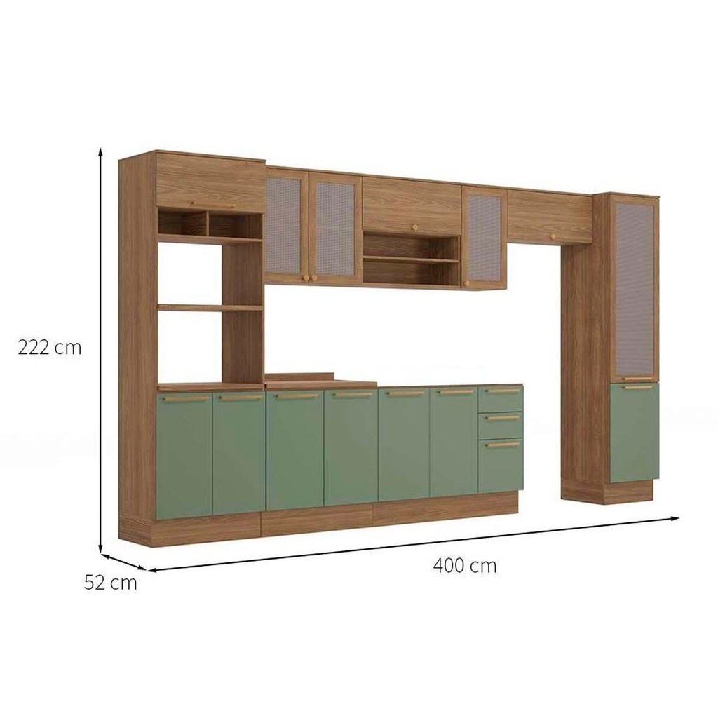 Cozinha Completa Botanic 8 Peças (3 Armários + 2 Balcões + 2 Paneleiros + 1 Complemento) s/Pia M651 Nogueira/Verde Oliva - Kappesberg
