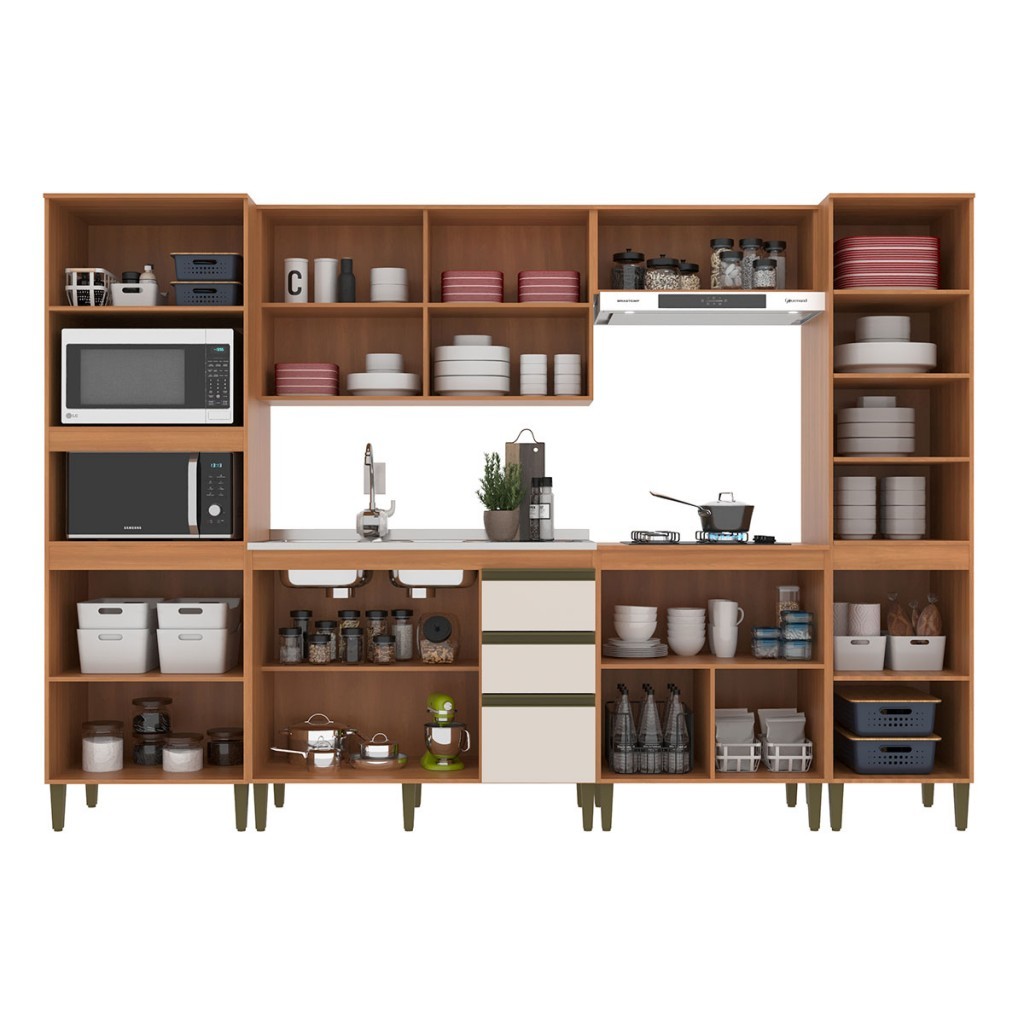 Cozinha Completa Cecilia 12 Portas 3 Gavetas Freijó/Off White - Jcarvalho