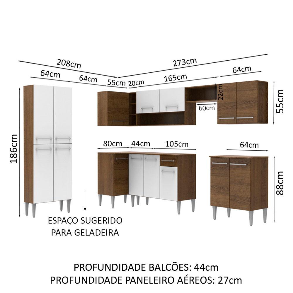 Cozinha Completa de Canto Madesa Emilly Moon Armário e Balcão 15 Portas 1 Gaveta - Rustic/Branco