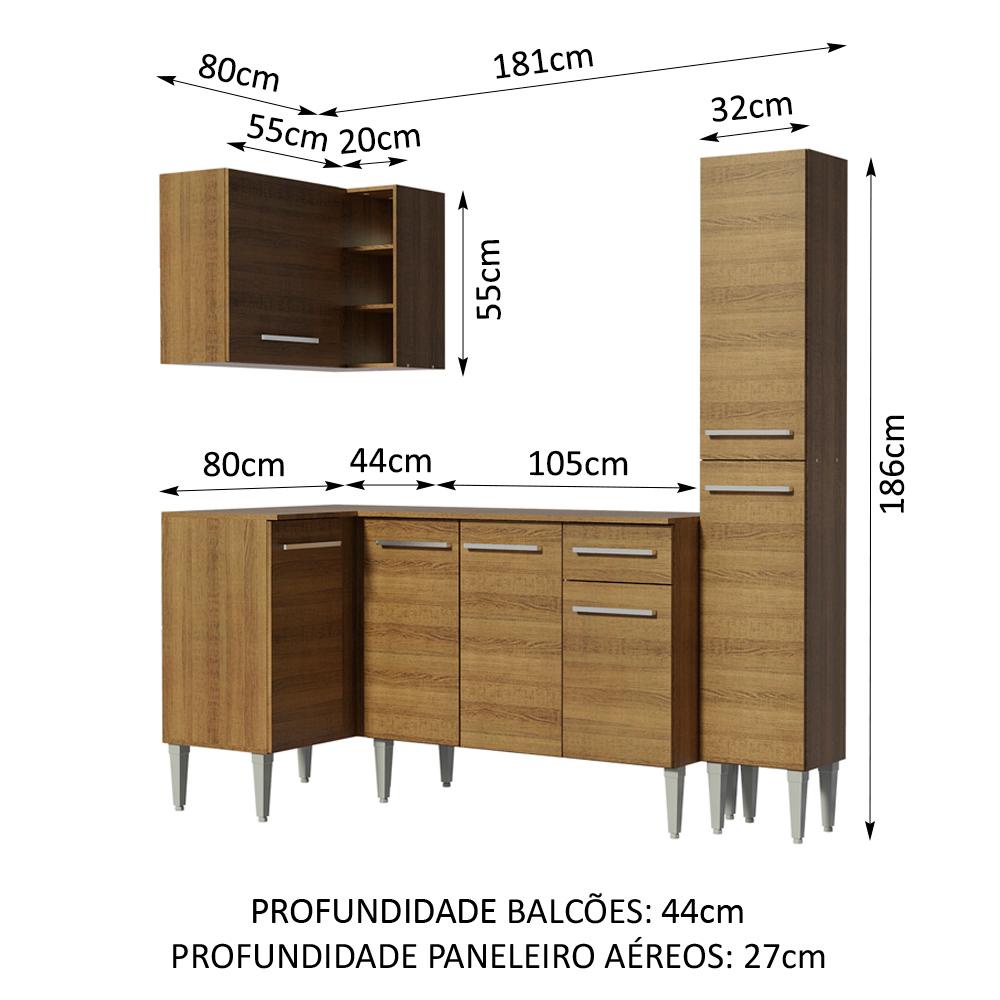 Cozinha Completa de Canto Madesa Emilly Song com Armário, Balcão e Adega