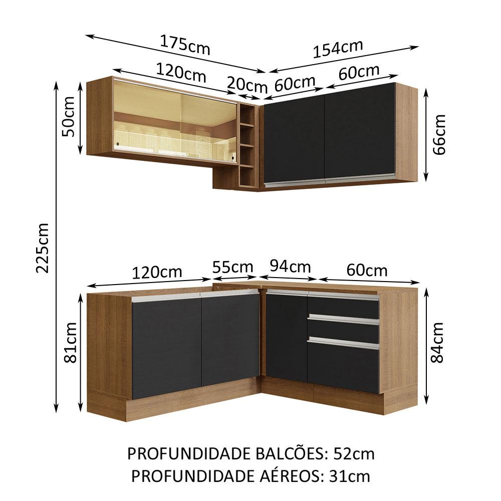 Cozinha Completa de Canto Madesa Glamy 329002 com Armário e Balcão (Sem Tampo e Pia) - Rustic/Preto