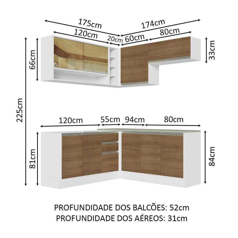 Cozinha Completa de Canto Madesa Glamy 349002 com Armário e Balcão (Sem Tampo e Pia) - Branco/Rustic