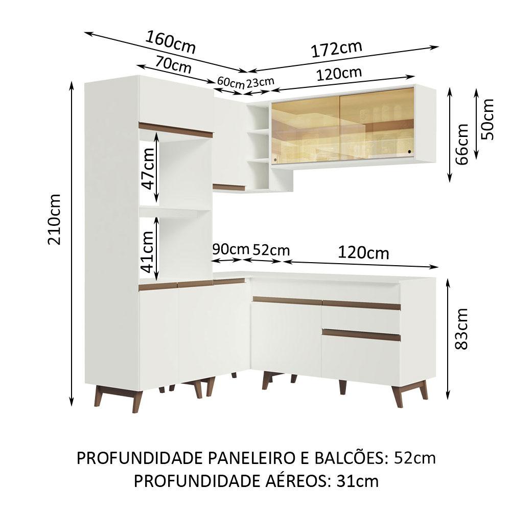 Cozinha Completa de Canto Madesa Reims 332001 com Armário e Balcão - Branco