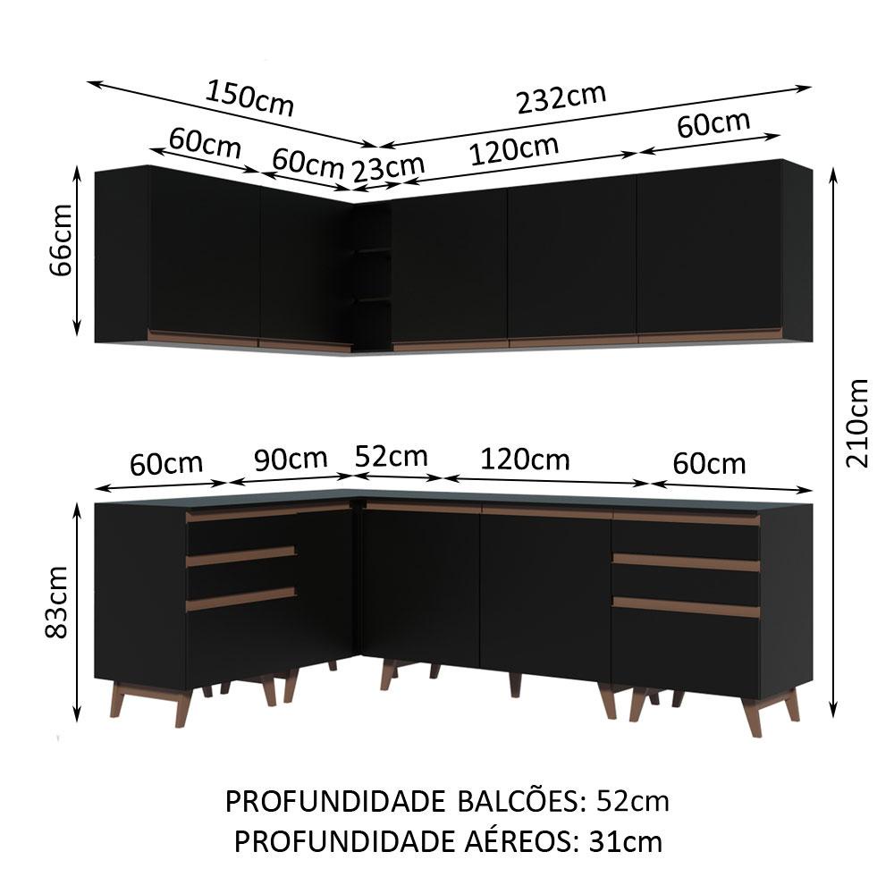 Cozinha Completa de Canto Madesa Reims 382002 com Armário e Balcão - Preto