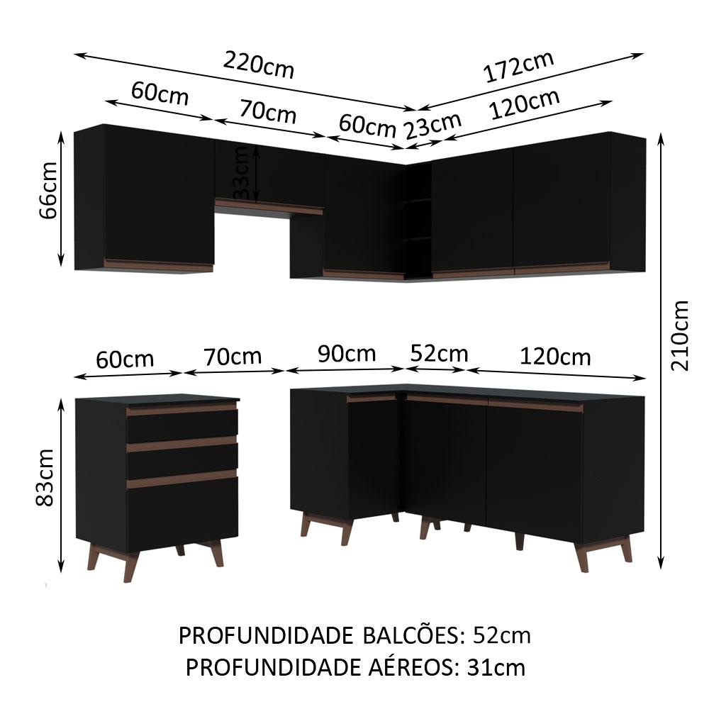 Cozinha Completa de Canto Madesa Reims 392001 com Armário e Balcão - Preto