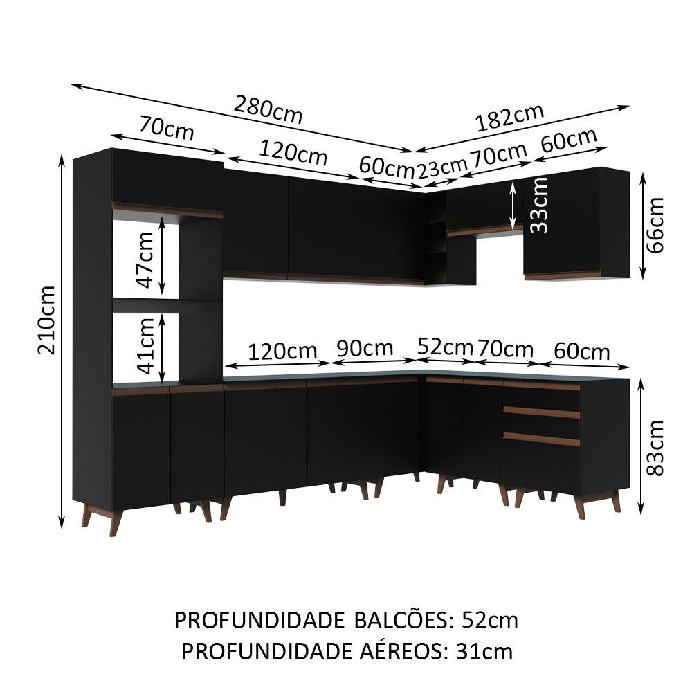 Cozinha Completa de Canto Madesa Reims 462001 com Armário e Balcão - Preto