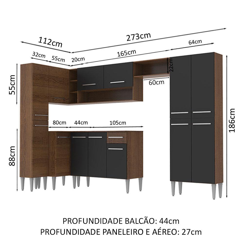 Cozinha Completa de Canto Reto Madesa Emilly Love com Armário e Balcão 13 Portas 1 Gaveta