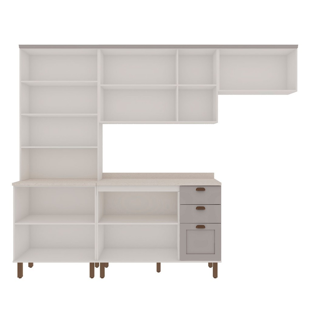 Cozinha Completa Iluminata 10 Portas 3 Gavetas 100% Mdf com Vidro Branco/Fendi/Mineral - Genialflex