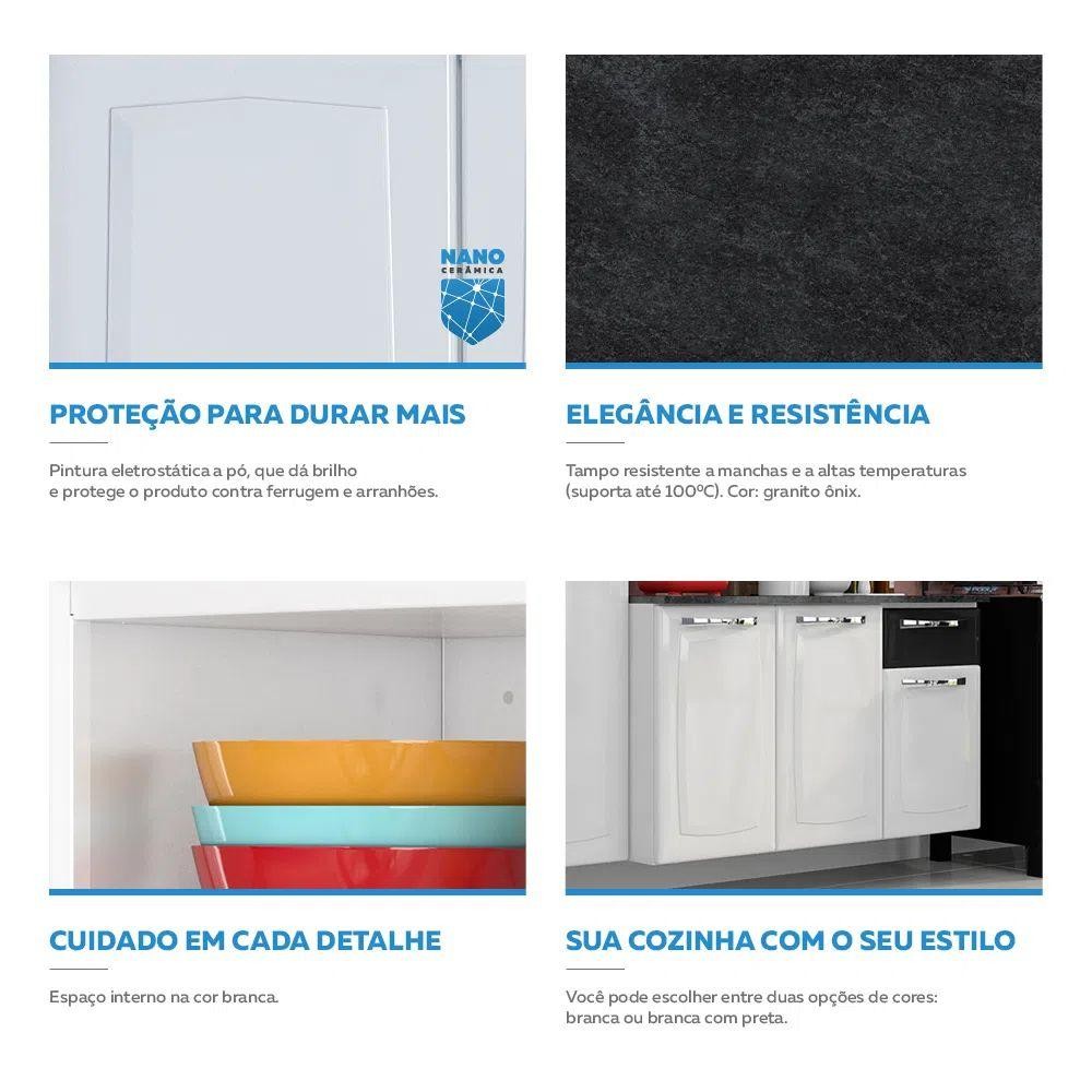 Cozinha Completa Itatiaia Aço Amanda Com Paneleiro Duplo Armário Aéreo e Balcão Branco Nevada