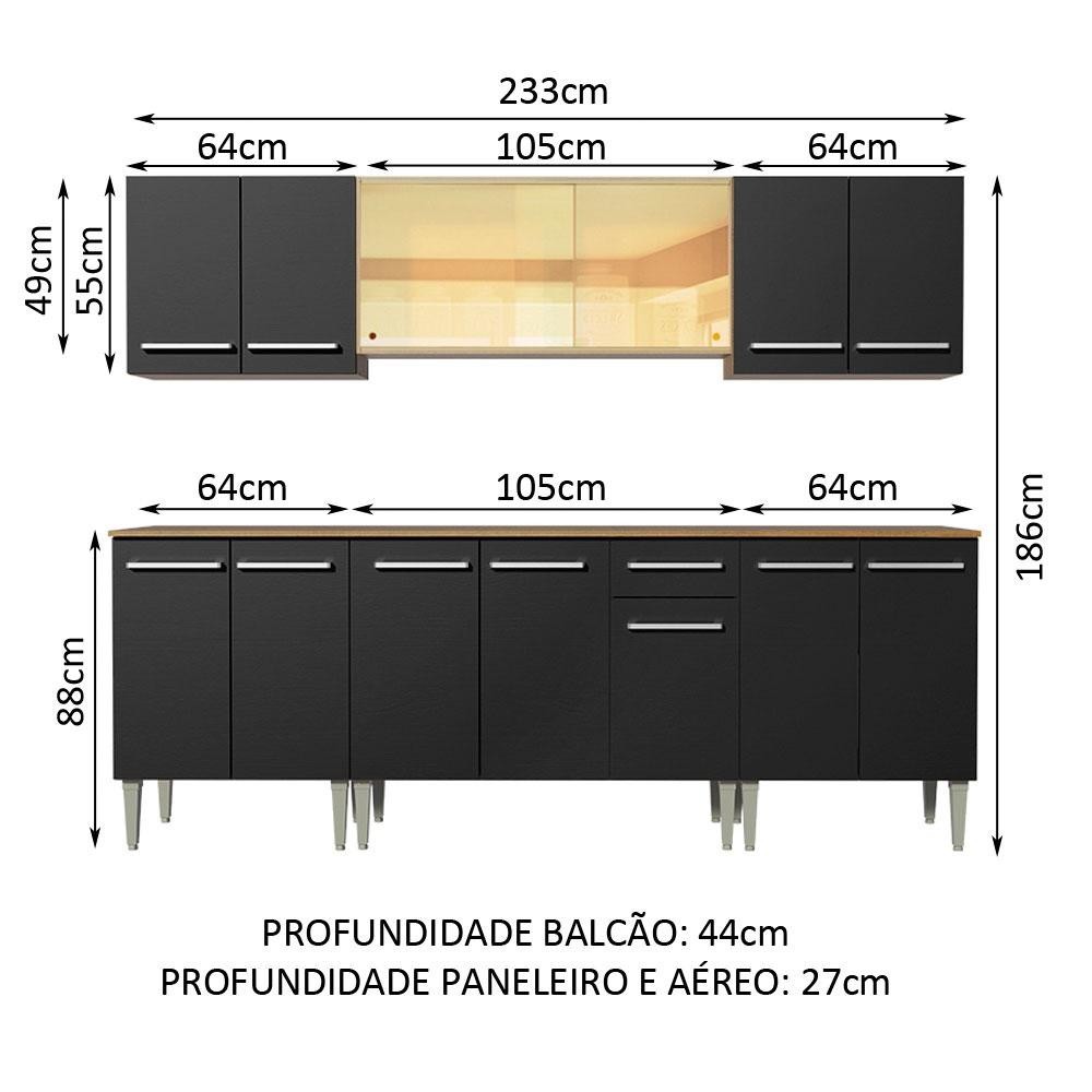 Cozinha Completa Madesa Emilly Fire com Balcão e Armário Aéreo Reflex - Rustic/Preto