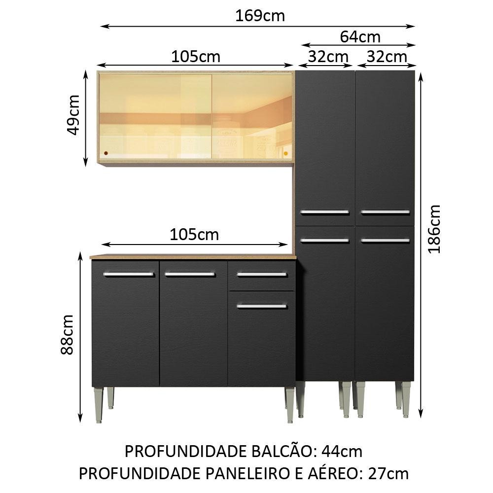 Cozinha Completa Madesa Emilly Voice com Armário Vidro Reflex, Balcão e Paneleiros - Rustic/Preto